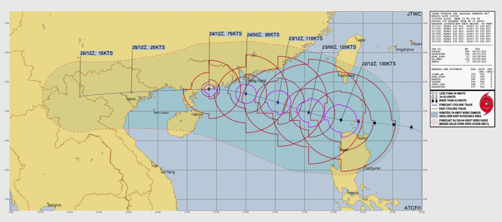 Super Typhoon Ragasa is currently tracking west-northwest across the northern Philippines and into the South China Sea, with sustained winds exceeding 130 knots at peak intensity. Forecasts from the Joint Typhoon Warning Center show it maintaining super typhoon strength as it approaches the southern China coastline near Hong Kong and Guangdong around September 24, before weakening over northern Vietnam. This trajectory takes it directly across one of the busiest LNG shipping corridors in Asia. The South China Sea is a vital route for cargoes coming from Australia, Qatar, and Southeast Asia heading to key buyers such as China, Taiwan, and Japan, and the presence of such an intense system will force LNG carriers to reroute, delay sailings, or idle at safer anchorage points until the storm passes.