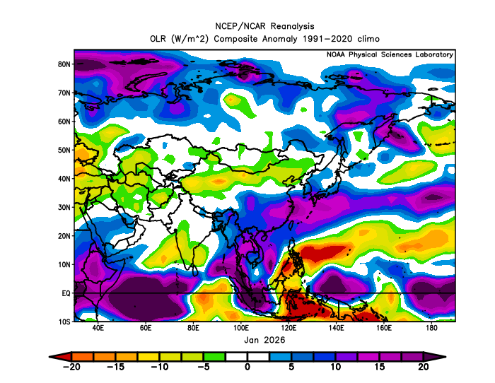 However, a notable cold push reached northern China and Japan in late January to early February.