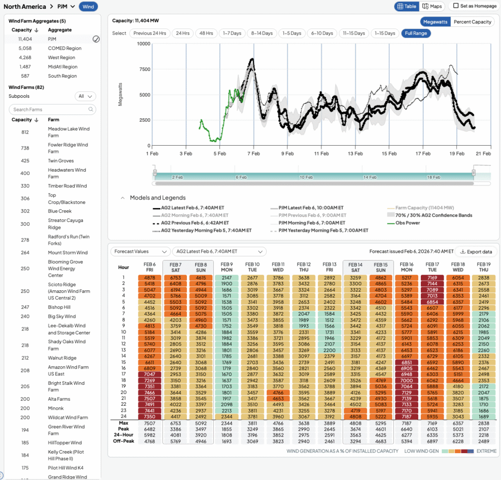 The wind generation forecast will interact with this temperature-driven demand shift by influencing how much net load PJM must serve with dispatchable resources. During the colder phase, strong wind output can provide meaningful relief by offsetting part of the increased heating load. As temperatures warm and demand pressure declines, wind variability becomes less of a stress factor, though weaker wind periods could still tighten conditions if they coincide with remaining peak hours. Overall, improving temperatures reduce the demand burden, making the system less dependent on consistently high renewable output.
