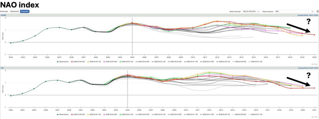 This is a follow-up blog to an earlier article available at https://www.ag2trader.com/1-15days/?blogPostID=190084, taking it to the main large-scale driver for Europe in the sub-seasonal space this time of the year (MJO and Stratosphere). The MJO could be speeding up and, reinforced by a Kelvin Wave, could start stimulating a pattern transition into the back half of March towards lower NAO values, while the unfolding SSW in the background struggles to show clear footprints.